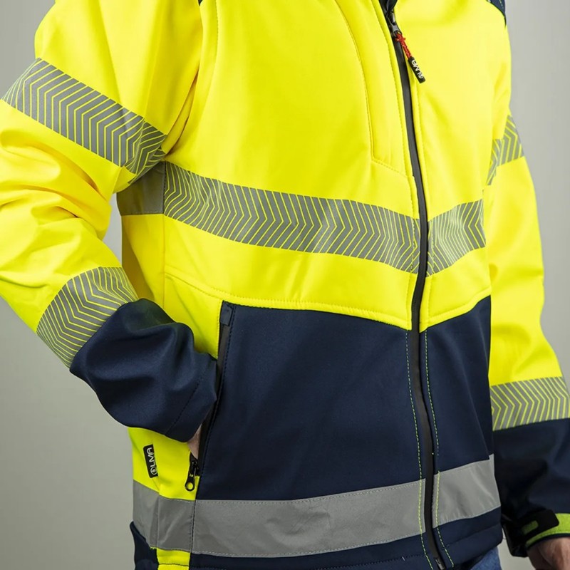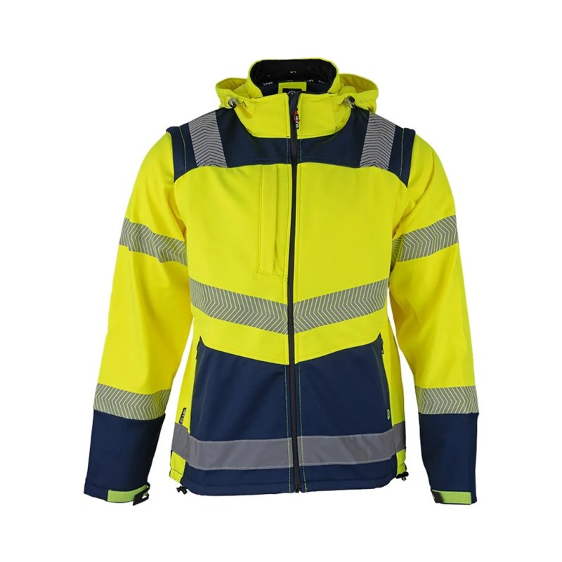 Ce blouson softshell 2en1 répond à la norme EN20471 - Classe 2 lorsqu'il est porté avec les manches - Classe 1 Lorsqu'il est porté en gilet de travail sans manches