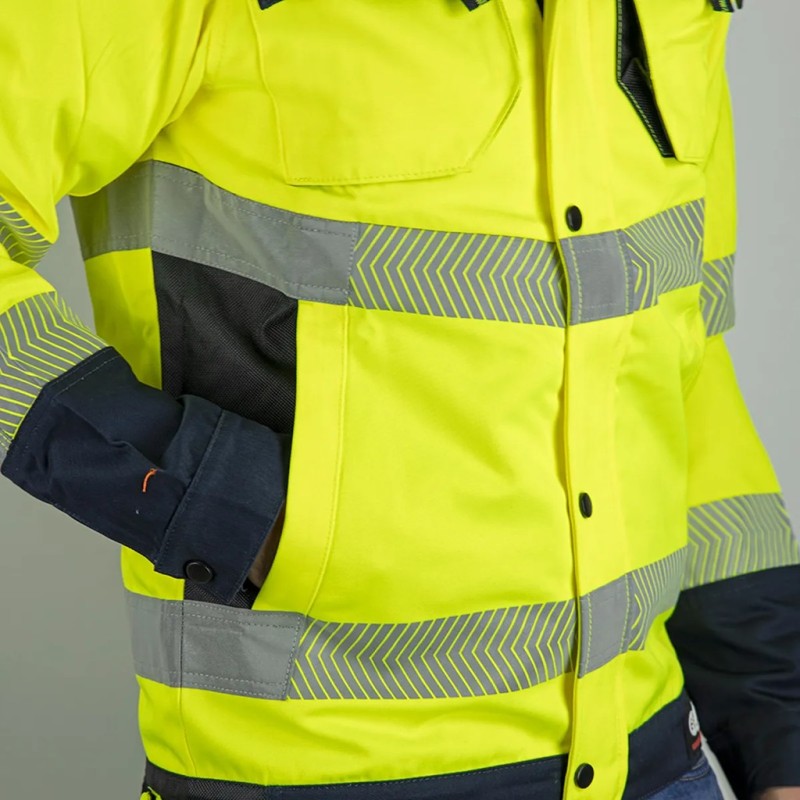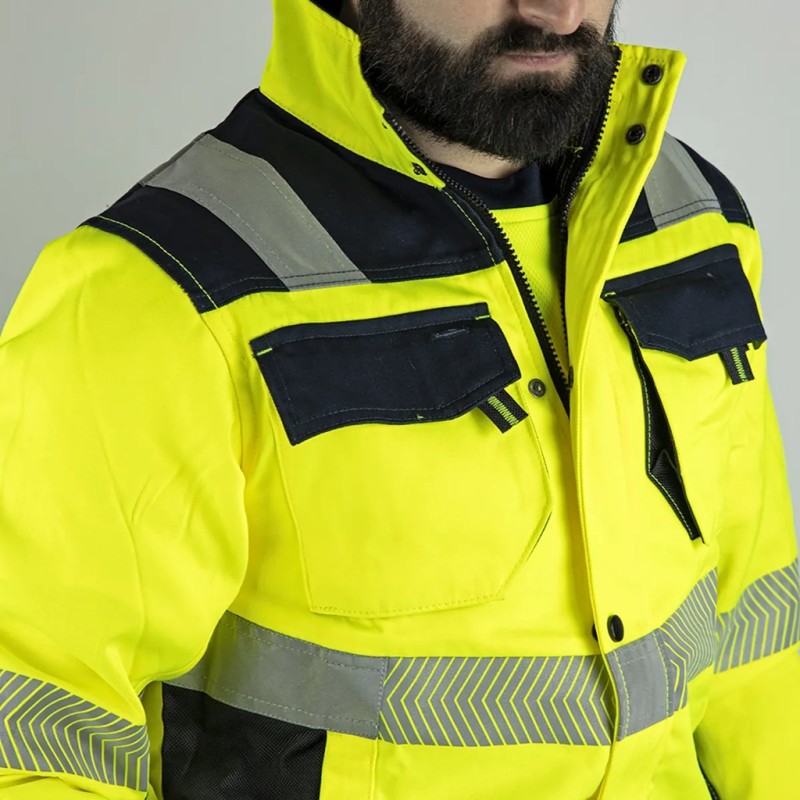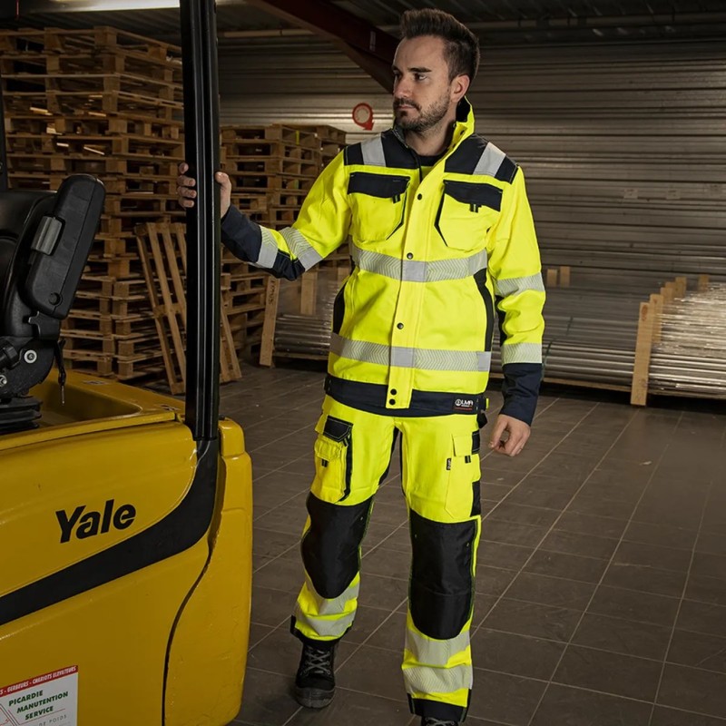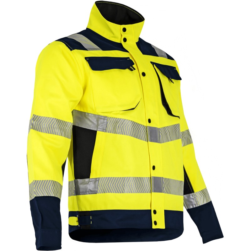 Veste de travail Haute Visibilité LMA AUTHENTIC HV. Col montant, bandes rétroréfléchissantes, empiècements contrastés. Composition de qualité.
